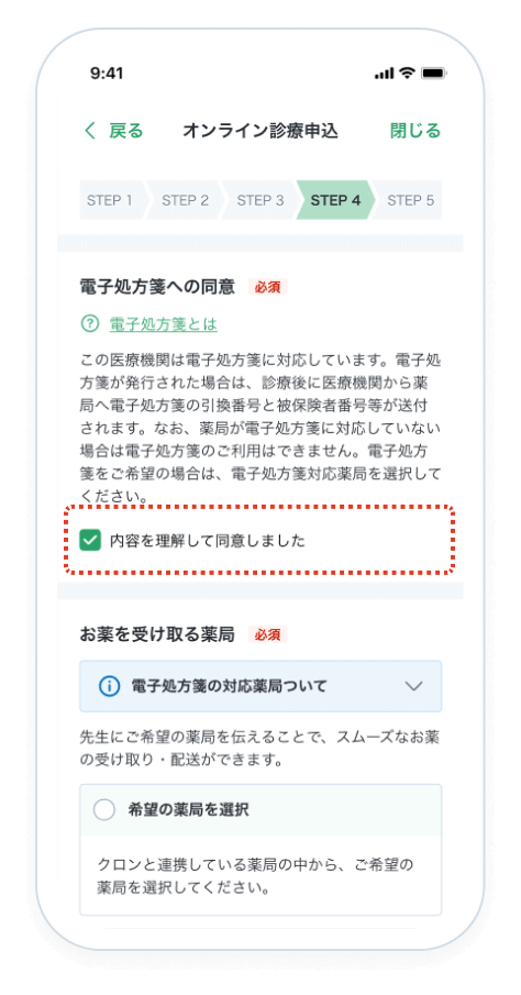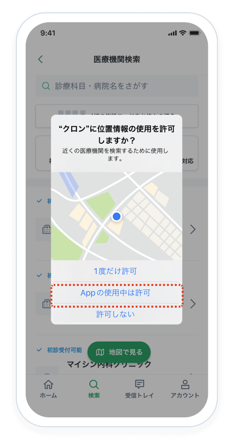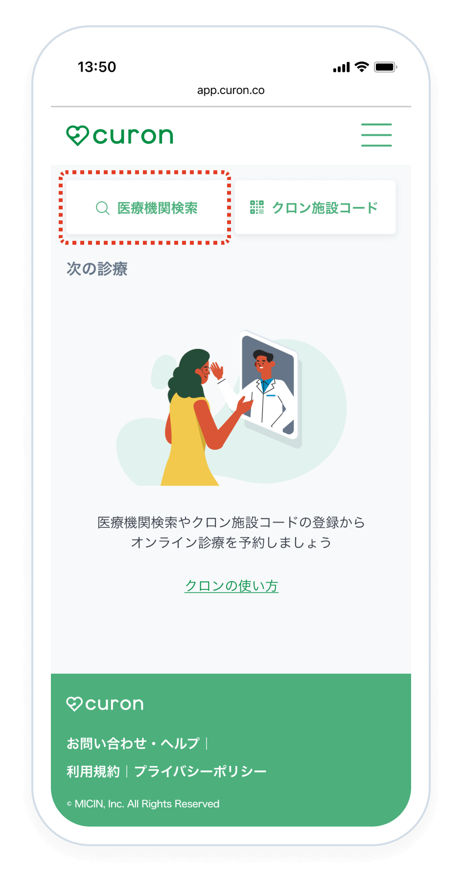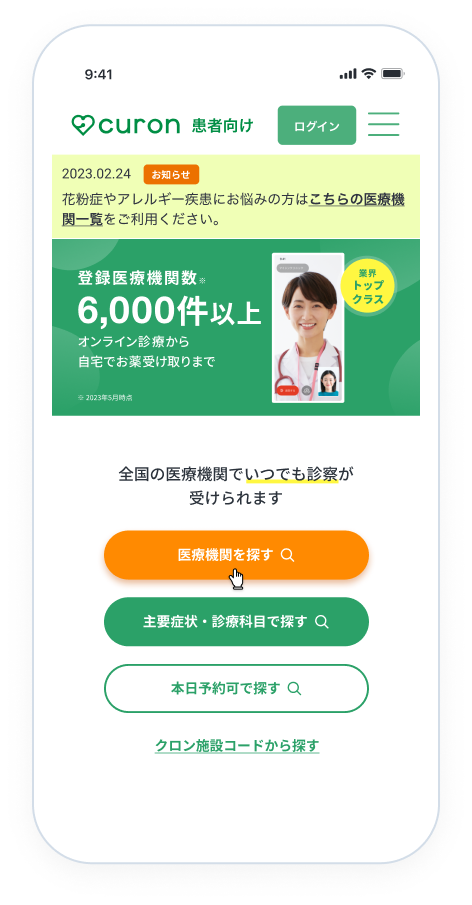 かかりつけの医師からクロンを使ったオンライン診療を承諾されている場合は、病院・クリニックから4桁のクロン施設コードを受け取ってください。