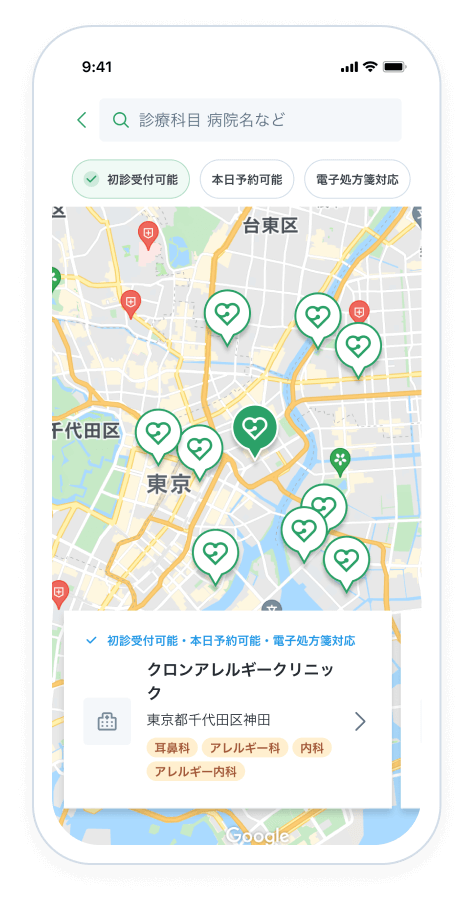 クロンは、かかりつけの医療機関と患者をつなぐ、オンライン診療サービスです。 スマートフォン上で、病院(クリニック)の予約・問診・診察・処方箋または薬の受け取り・決済までを行うことができます。