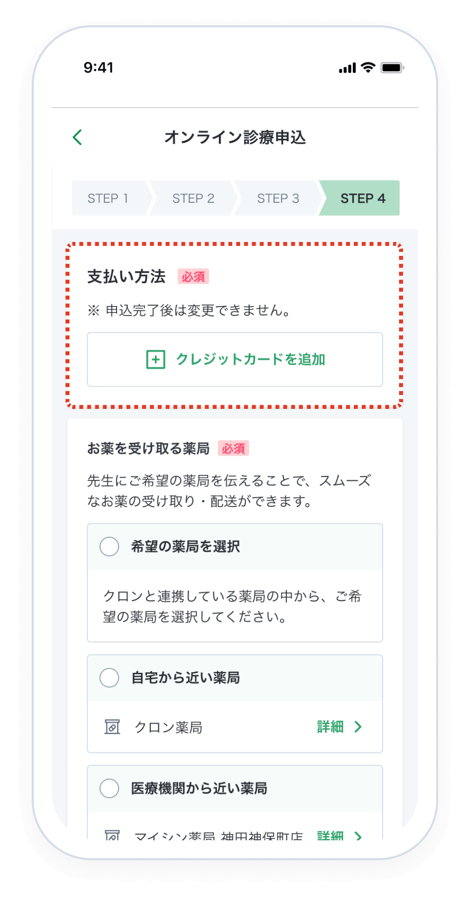 診療代金やお薬・処方箋の配送料などのお支払いはクレジットカード(VISA, MasterCard, JCB, AMEX, Diners)で決済いただけます。