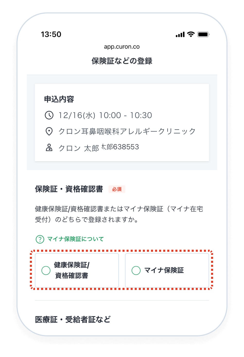 保険診療の場合は、診察回ごとに保険証/資格確認書を確認します。予約時や診察を受ける際には、必ずお手元にご用意ください。